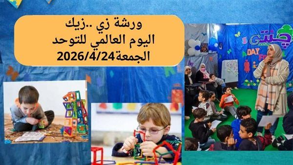 تنظم مكتبة مصر الجديدة للطفل ورشة عمل بعنوان «زي.. زيك»، وذلك في تمام الساعة الواحدة ظهر غد الجمعة، بمناسبة اليوم العالمي للتوحد، وبرعاية الدكتورة سهام الجوهري، رئيس مجلس إدارة جمعية مصر الجديدة.