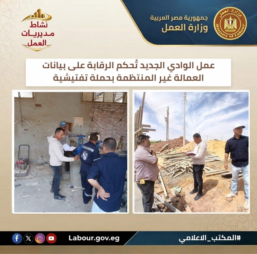 نفذت مديرية عمل الوادي الجديد، بإشراف أسامة إبراهيم، حملة لمطابقة البيانات الميدانية بالمسجلة إلكترونيًا.