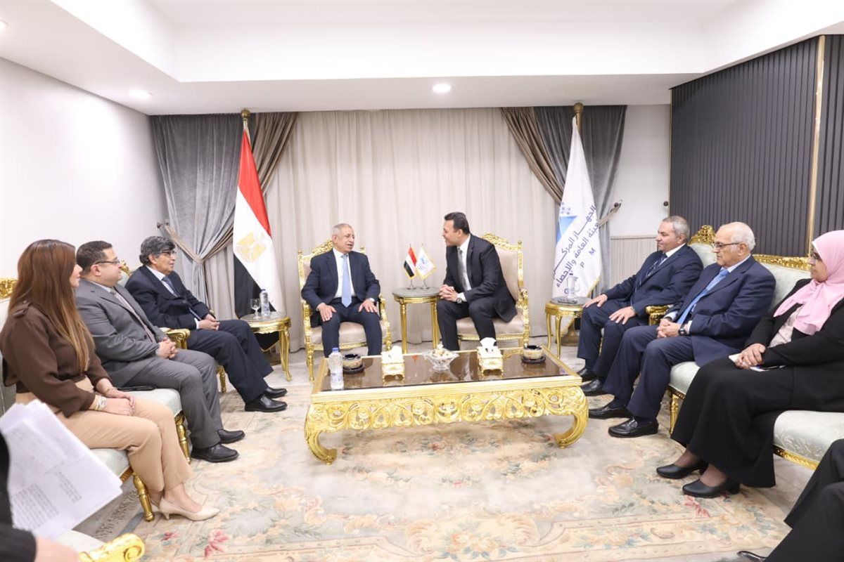 استقبل اللواء مهندس أكرم أحمد الجوهري، رئيس الجهاز المركزي للتعبئة العامة والإحصاء الدكتور إسماعيل عبد الغفار فرج -رئيس الأكاديمية العربية للعلوم والتكنولوجيا والنقل البحري والوفد المرافق له ، يوم الثلاثاء الموافق 21/4/2026 بمقر الجهاز، وذلك في إطار بحث سبل تعزيز التعاون المشترك بين الجانبين، وتبادل الخبرات في المجالات ذات الاهتمام المشترك.
