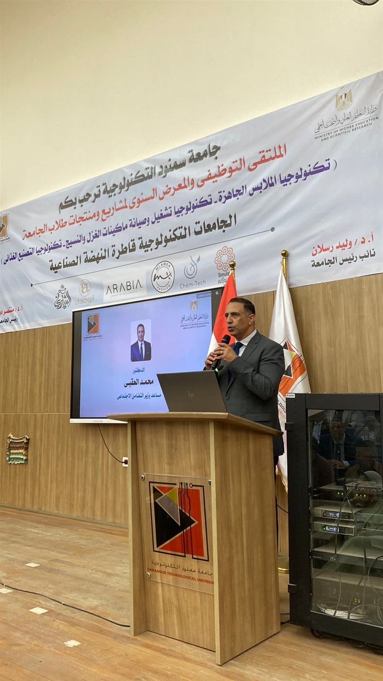 كما شهد الحضور فعاليات الملتقى التوظيفي والمعرض السنوي لمشروعات ومنتجات طلاب جامعة سمنود التكنولوجية، والذي أُقيم تحت شعار «الجامعات التكنولوجية قاطرة النهضة الصناعية»، في إطار توجه الدولة نحو دعم التعليم التكنولوجي وربطه باحتياجات سوق العمل.