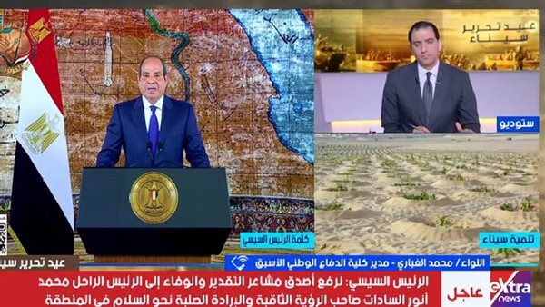 عرضت قناة إكسترا نيوز مداخلة للواء محمد الغباري، مدير كلية الدفاع الوطني الأسبق، بمناسبة ذكرى تحرير سيناء، تحدث خلالها عن الدروس العسكرية والتاريخية المستفادة من معارك مصر الممتدة من حرب أكتوبر وحتى مواجهة الإرهاب.