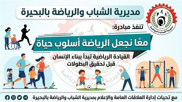 تواصل مديرية الشباب والرياضة بالبحيرة ،من خلال إدارة العلاقات العامة والإعلام بالمديرية، فعاليات مبادرة توعوية جديدة بعنوان "معًا نجعل الرياضة أسلوب حياة ، في إطار حرص الدولة على تعزيز ثقافة الممارسة الرياضية وغرس أنماط الحياة الصحية في المجتمع ."