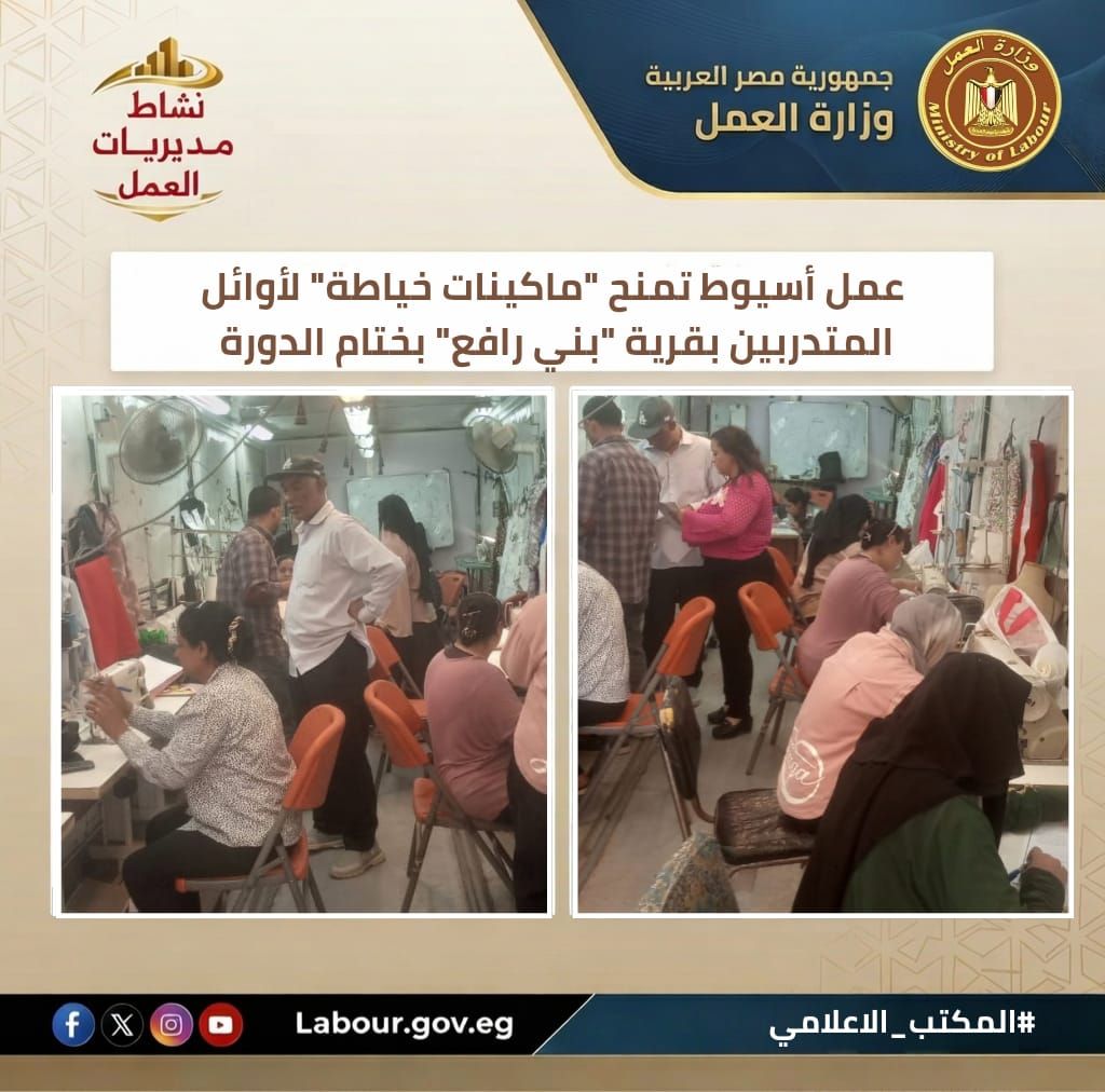 اختتمت مديرية عمل أسيوط، بإشراف الدكتور حازم علي حسن، دورة "التفصيل" بالعربة المتنقلة بمركز منفلوط.